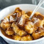 Place your baking pan in the preheated oven. Bake for about 25–30 minutes or until the top is golden brown. Once done, remove from the oven and dust with powdered sugar if desired. Enjoy your delightful French Toast Casserole!