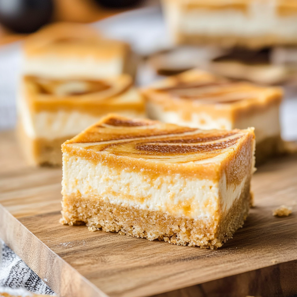 These delightful treats are creamy bars made with pumpkin puree and spices, set on a graham cracker crust, perfect for fall.