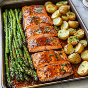 Discover the perfect weeknight dinner with our Salmon, Potato, + Asparagus Sheet Pan Meal. This quick and easy recipe combines succulent salmon filets with tender baby potatoes and vibrant asparagus, all seasoned to perfection. In just 40 minutes, you can enjoy a nutritious meal that requires minimal cleanup—everything cooks together on a single baking sheet! The delightful blend of garlic, onion powder, and paprika elevates the flavors, making each bite a treat. Whether you’re busy during the week or enjoying a leisurely weekend, this dish is an excellent choice for a healthy and satisfying dinner.